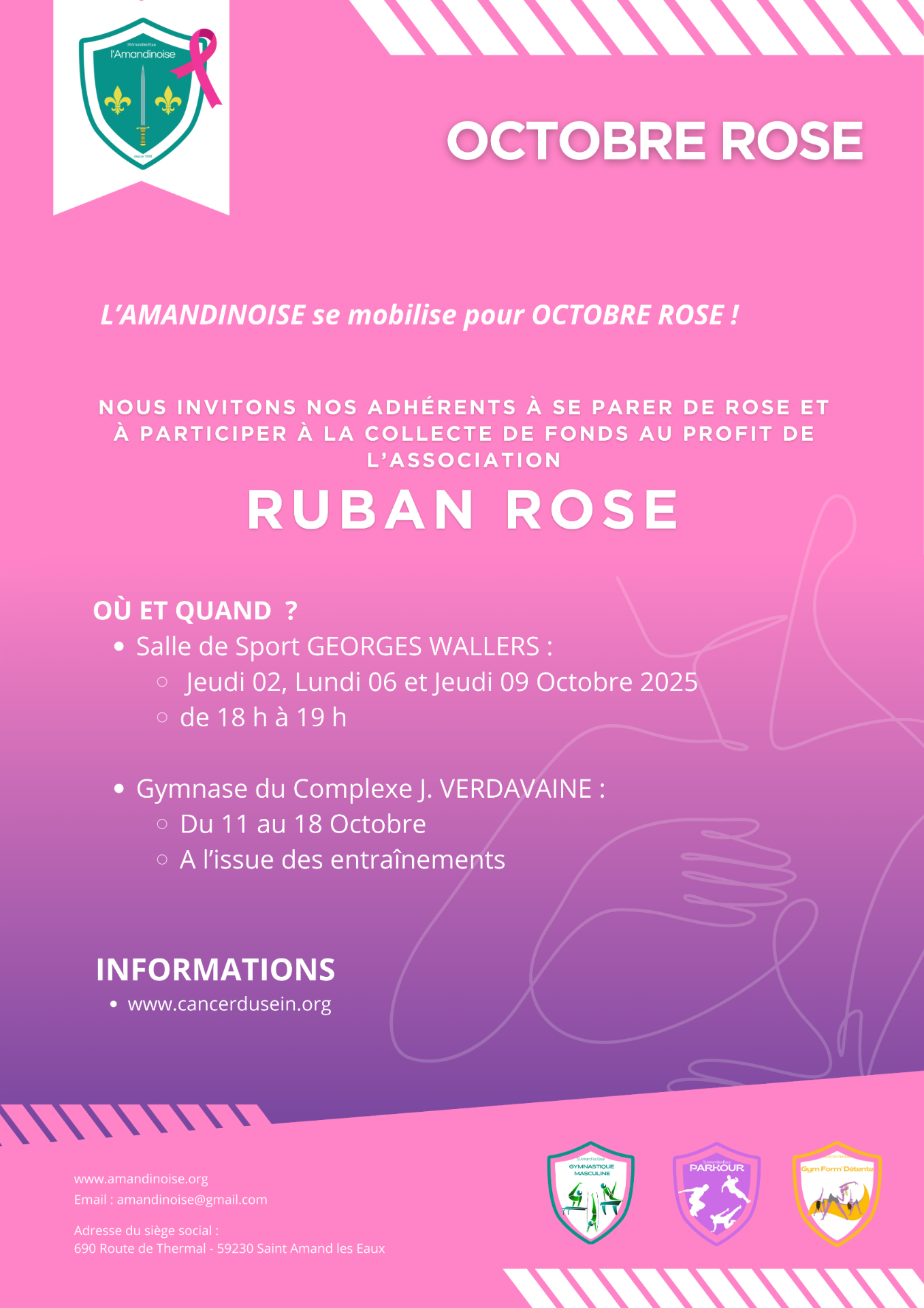 Les activités se dérouleront au gymnase du complexe Omnisports Jean Verdavaine. Nous vous encourageons à venir vous inscrire pour garantir votre place et découvrir nos programmes.