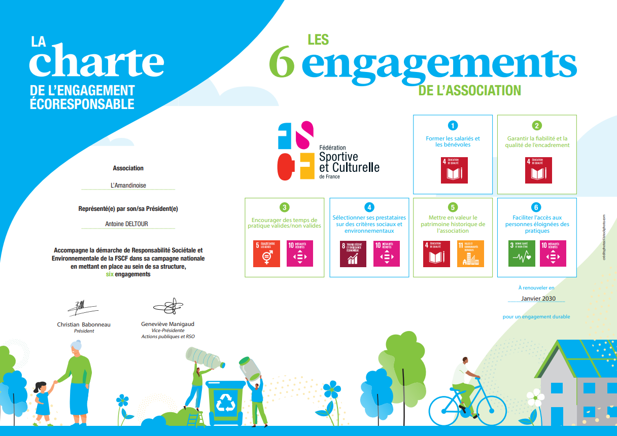Le Label "développement durable, le sport s'engage" est délivré par le COMITE NATIONAL OLYMPIQUE ET SPORTIF FRANCAIS. Il est obtenu dans le cadre de l'organisation de manifestation mise en œuvre par l'association.