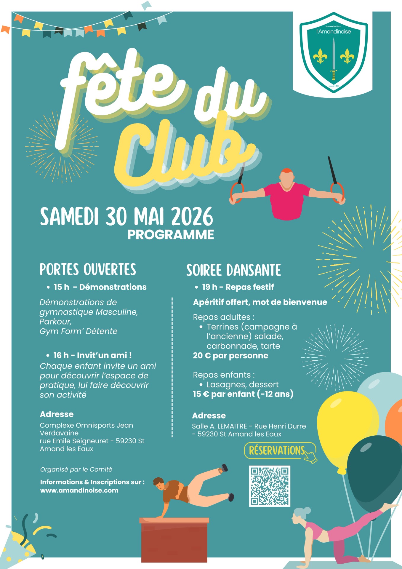 Le samedi 30 mai prochain, se tiendra la Fête du Club.Ce moment convivial vise à renforcer les liens entre nos adhérents, nos familles et faire connaître l'Amandinoise au plus grand nombre.